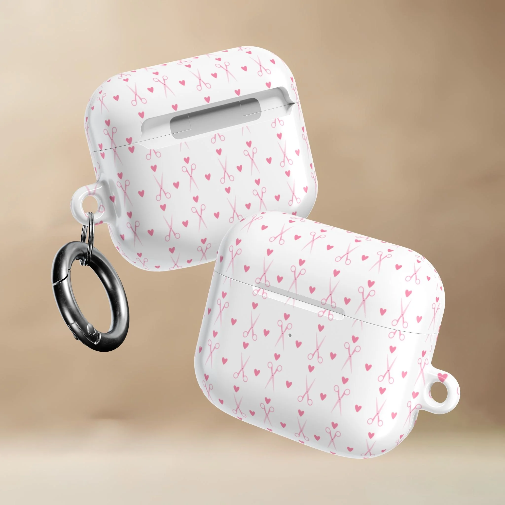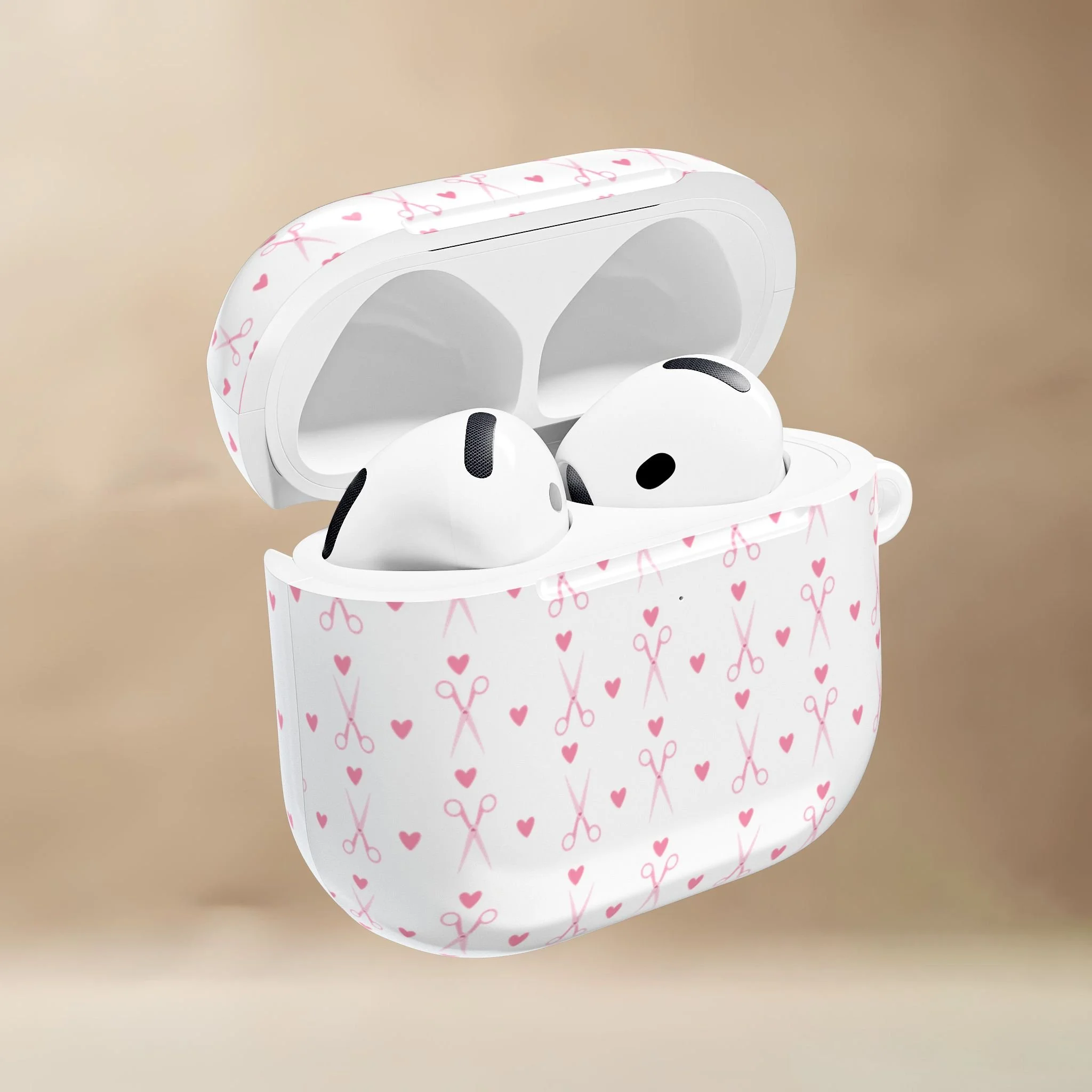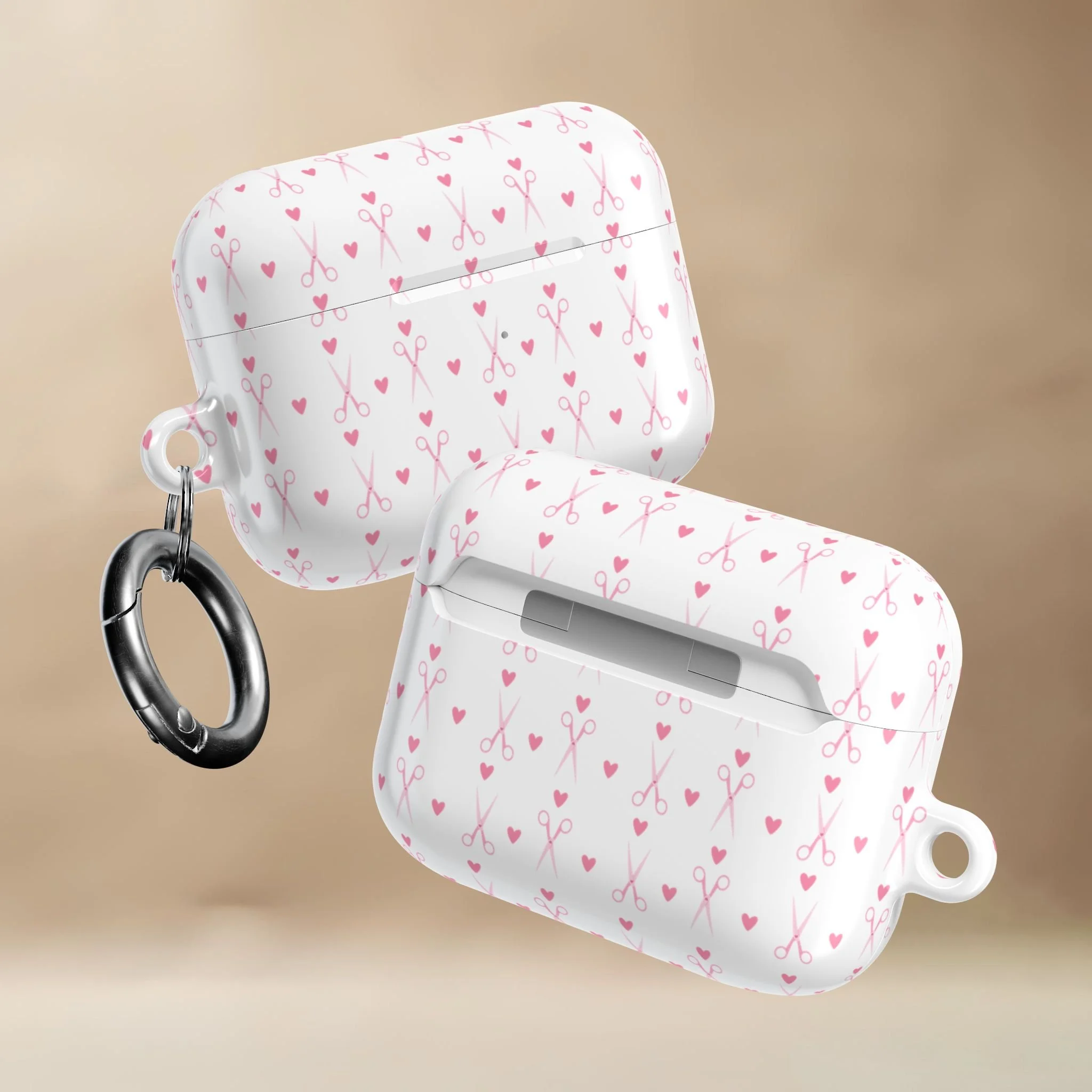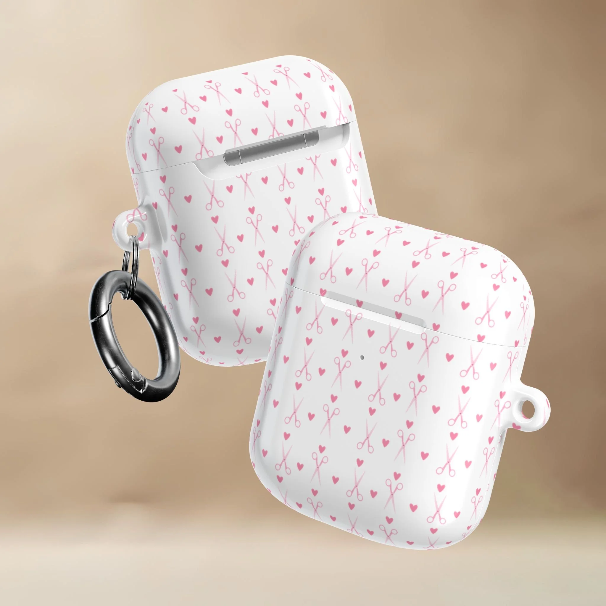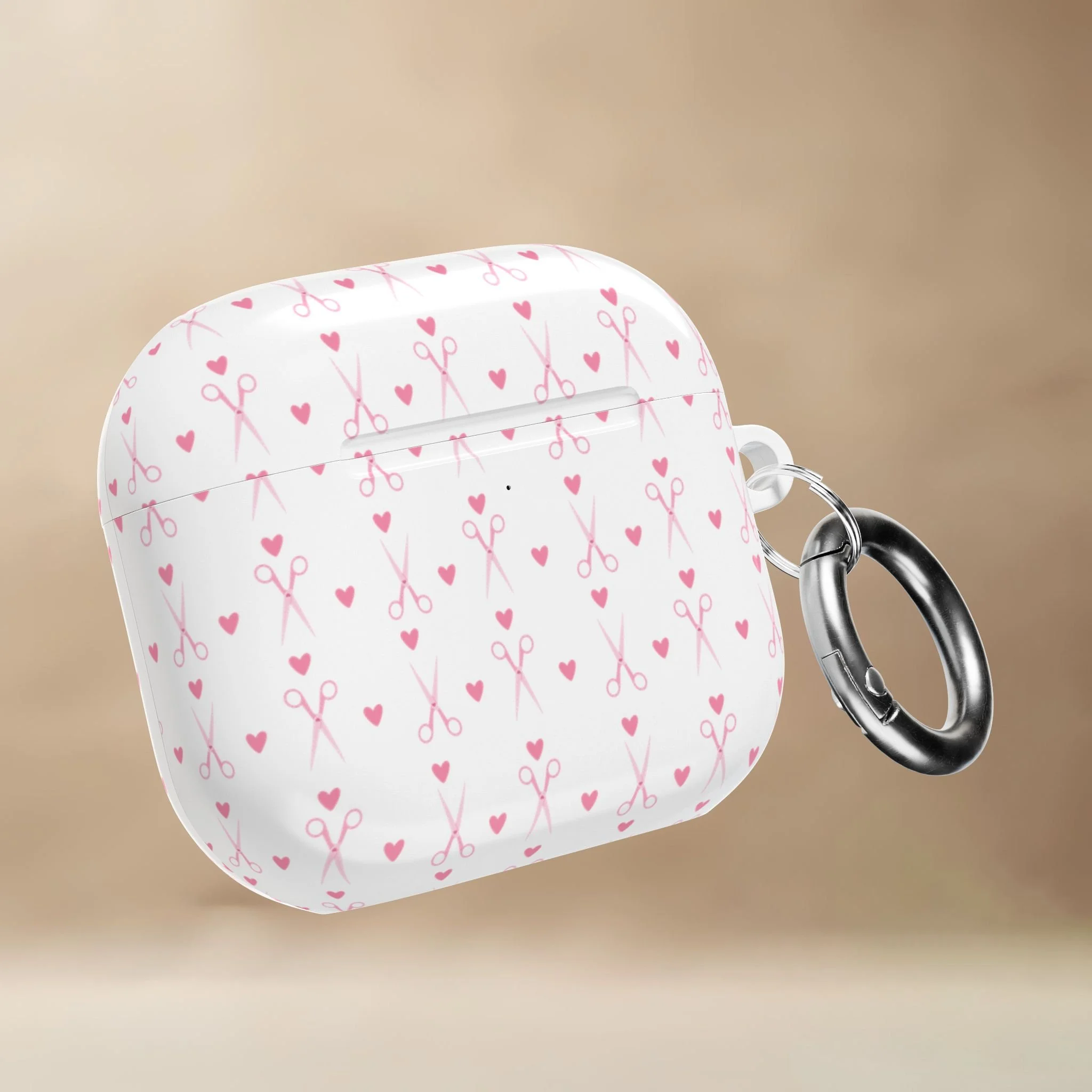 This glossy, slim AirPods case features tiny hearts, and delicate shears drifting across a creamy background. Sweet, subtle, and stylist-approved, it adds personality without shouting for attention.
